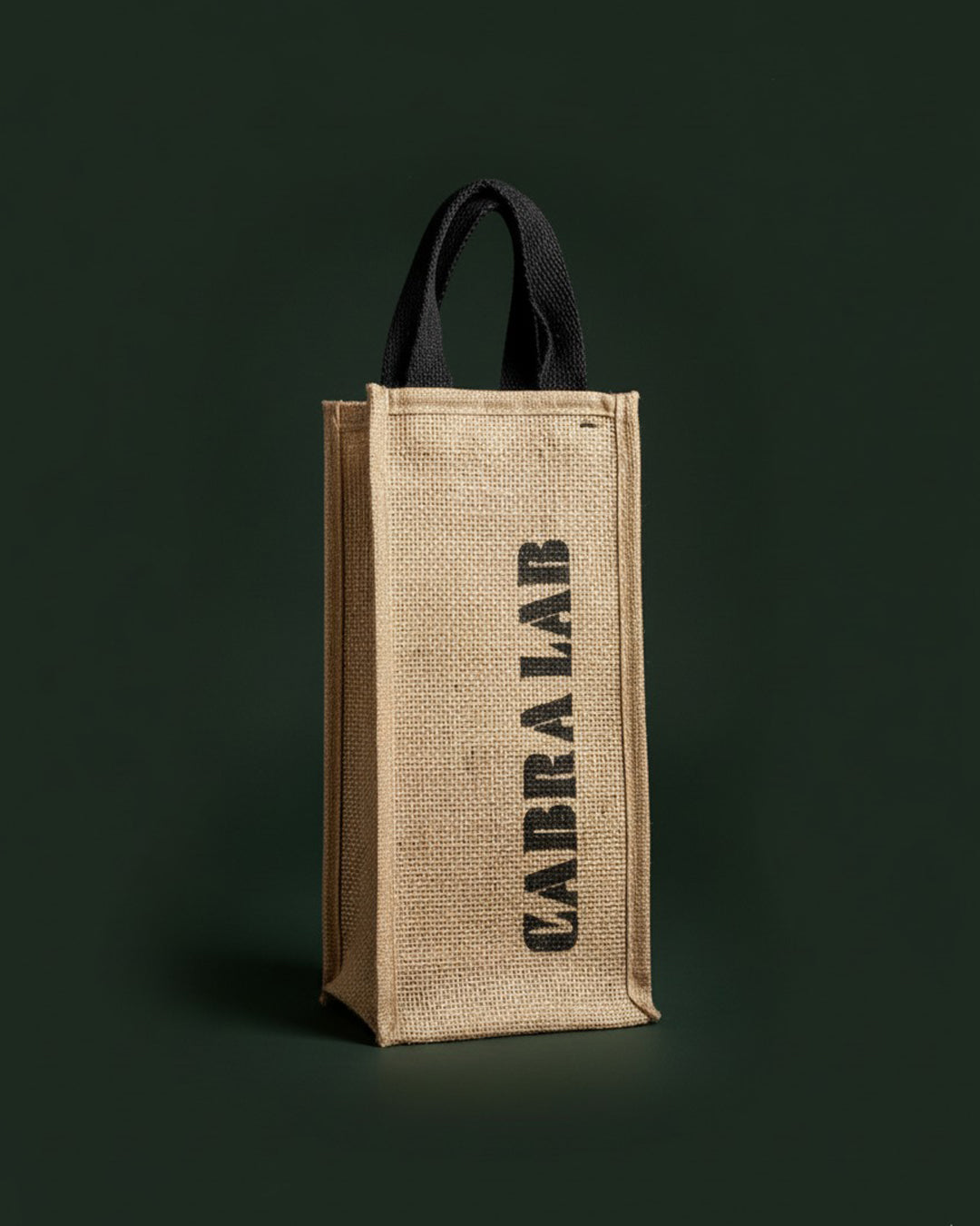 Kit contendo: 1 Cabra Lab 750ml + 1 Ecobag Juta Cabra Lab para garrafa + Caixa Individual